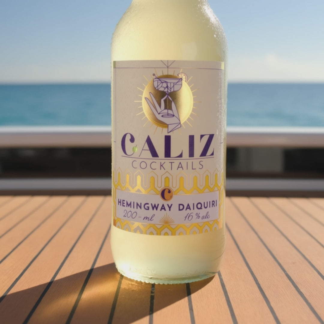 Coastal Cool, Island Crafted, Bold, crisp, and citrus forward. The Hemingway Daiquiri is a cocktail with serious character. Inspired by the legendary writer and his love for strong, refreshing drinks, this handcrafted blend of premium white rum, fresh grapefruit, lime, and a hint of cherry liqueur is bottled right here in Mallorca.